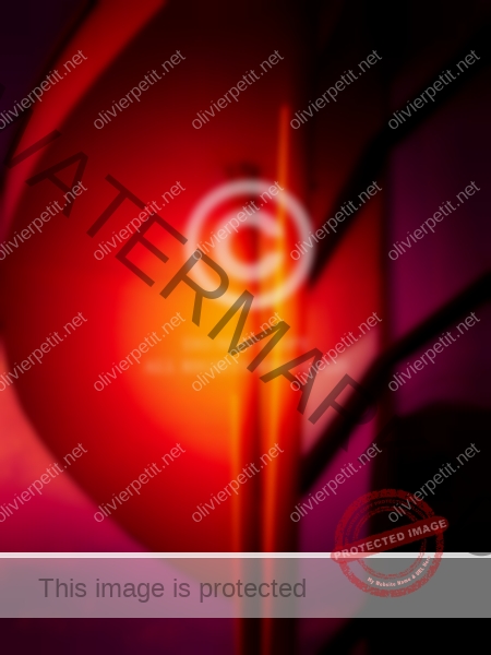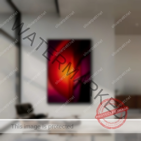 Le rouge incandescent, presque irréel, semble jaillir de la matière métallique.
