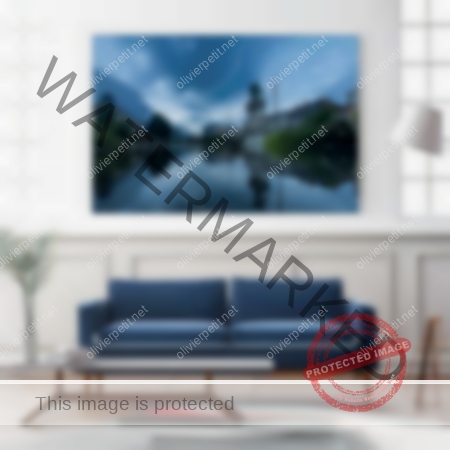 Le cadrage à hauteur d’eau amplifie la monumentalité de la sculpture tout en lui conférant un double fantomatique, par le jeu du reflet. Le miroir liquide, maîtrisé avec une précision quasi picturale, introduit une lecture inversée du pouvoir et de la mémoire : ce n’est plus seulement la statue qui domine la place, mais l’image mentale qu’elle projette dans l’imaginaire collectif.